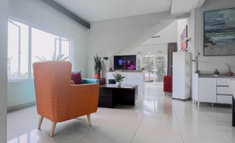 Welcome to Chamomile Villa Lembang, a place to return to yourself. Here, the air moves a little slower, the world grows a little quieter, and the space gently invites you to simply be. This villa is created for warm gatherings— for families who haven’t sat together in a while, for friends who want to share stories, and for hearts that are tired from the noise of everyday life. Comfortable for 12 guests, up to 20 if needed, with a spacious garden, a cozy living room, and a balcony to welcome the morning light. Here, you may sit without a reason, talk without watching the time, or stay quiet and let your heart speak softly. At Chamomile Villa Lembang, nothing asks you to be strong. You are allowed to rest. To breathe. To feel whole again. Chamomile Villa Lembang — a place where tired souls finally find home.
