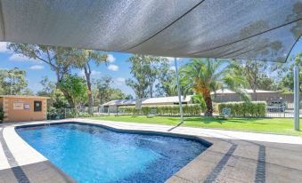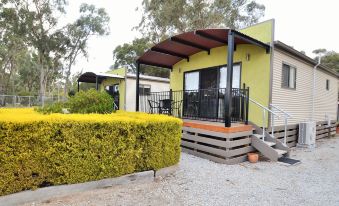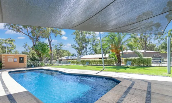 We had a wonderful weeks stay here in our caravan on a grassy site under shady trees. The park has a great pool , amenities block , kitchen , rain water tanks & supplies store. The staff are lovely & it is just next to the Weir Info centre which is very interesting to visit. In the mornings at the Weir you can watch the separation & release of the native fish from the unwanted carp. Nice walks along the river bank & through the forest . Remember to bring fresh drinking water otherwise you can boil the rainwater they supply . Highly recommend this park