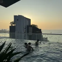 Nous avons choisi cet hôtel pour son emplacement et sa piscine sur le toit. L'emplacement est pratique, il y a de nombreux magasins, salons de massage et un marché nocturne à proximité. En général, tout ce que votre cœur désire. Enregistrement automatique, pas de réception. Autrement dit, vous devez contacter les administrateurs et ils vous diront où se trouve la clé. Cette méthode ne convient probablement pas à tout le monde.