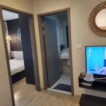 Chambre studio, un peu défraîchie. Il y a une kitchenette, un petit salon avec télévision, une chambre avec armoire et un balcon. En gros, tout ce dont vous avez besoin. Mais il y a quelques inconvénients : il n'y a qu'une seule serviette par personne. Parfois, des cafards passent et de très petits insectes viennent manger les miettes. Mais dans l'ensemble, ce n'est pas critique.
