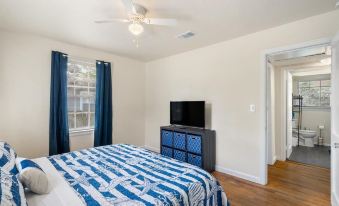 This 2-bedroom house is perfect for your escape to Pensacola, FL. With a soothing king bed and a charming twin bed, guests will feel right at home. Your family or crew will be close to everything when you stay at this centrally-located cozy place.About pets:No pets allowed.About checkOut:Check out before 10:00 AM.About children:Children allowed: ages 0-17.About checkIn:Check in after 4:00 PM.About smoking:Smoking is not permitted.About minBookingAge:Minimum age to rent: 18.About events:No events allowed.