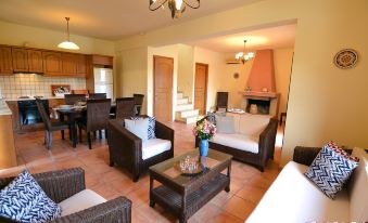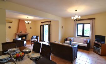 Christina Villa a une architecture inspirée de l'esthétique traditionnelle locale. La piscine privée ajoute aux caractéristiques du luxe discret et décore les nuits de la véranda. Grand salon ouvert avec salle à manger intégrée, une cheminée et d'un équipement complet, complète le confort et la détente que les clients apprécient quand ils ne choisissent pas de regarder et d'émerveillement à la vue sur la montagne, la tapisserie d'oliviers et de vignes.