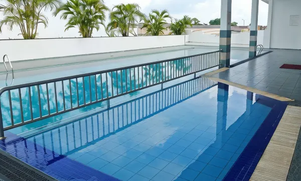 Hospitality is in great condition. Location also okay, has swimming pool also.