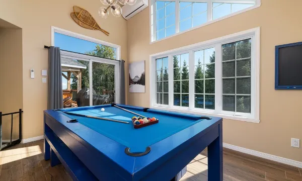We had a perfect ski weekend staying at Marilyne's lovely chalet. Only 13min from Le Massif de Charlevois base lodge. The chalet was very well appointed, 4 comfortable bedrooms, 2 bathrooms and we made full use of the fully stocked kitchen. Of course we loved the hot tub and I let one of my son's beat me at pool. On Sunday we were back at the hill for corduroy, then a visit at 4pm to the Nordic Spa Le Germain in Baie-Saint-Paul nearby. One sunny and one snowy day. Easy check-in and great communications with Marilyne. Thank you!