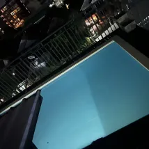 1. La piscine est au dernier étage. Elle est évidemment un peu ensoleillée mais l'eau est inexplicablement très froide. Je sors tous les jours et je ne rencontre personne d'autre. Comme un lieu privé.