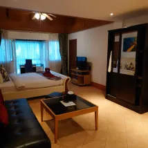 Nous avons passé la nuit dans cet hôtel. Que puis-je dire ? La rénovation est déjà ancienne, les lits ont également perdu leur utilité, il est situé à proximité de toute l'animation de Patong, mais l'entrée se fait par le marché. Est-ce que cela nous a dérangé ? Non . Il y a une place pour garer le vélo. Personnel sympathique et agréable, chambre propre, calme.