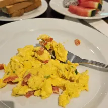 Le petit-déjeuner était quasiment inexistant. Le seul choix était du pain, du beurre, de la confiture et des œufs au plat, et ça m'a donné mal au ventre ! Mon amie a eu la nausée jusqu'à midi le lendemain de l'atterrissage !