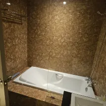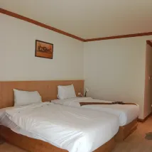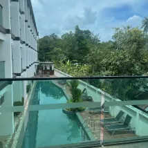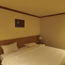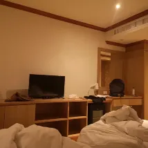 L'hôtel ressemblait à une auberge de jeunesse bon marché. La chambre était de taille correcte, ni trop petite ni trop grande, et disposait même d'un balcon. Il y avait une piscine juste devant le balcon, mais étonnamment, il n'y avait ni chaussons ni dentifrice. Quand j'en ai demandé à la réception, on m'a répondu qu'ils ne pouvaient pas m'en fournir. J'ai vu des geckos se promener sur le mur du couloir et j'ai eu peur qu'ils n'entrent dans la chambre. L'eau du lavabo était initialement jaunâtre, mais elle est redevenue claire au bout d'un moment. Sans chaussons, la douche était dans une baignoire, j'ai donc dû me tenir debout dessus pour me doucher, et l'eau éclaboussait partout ; j'avais peur de glisser après la douche.