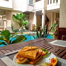 Comme nous sommes arrivés tard, nous nous sommes affrontés pour nous reposer. L'ambiance et les environs étaient calmes et agréables. J'aime les décorations de style balinais dans les chambres.