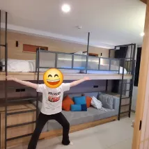 En octobre 2025, nous avons loué une suite familiale de deux pièces avec balcon au 5e étage. La chambre était excellente. Tout était bien pensé, tout était là et tout était en bon état. On sentait qu'ils y avaient mis du cœur. La chambre dispose de deux douches, ce qui est très pratique pour quatre personnes revenant de la plage. L'emplacement est excellent : deux 7Elevens à proximité, dont un pratiquement dans la cour. La plage est à trois minutes. Il y a de nombreux cafés à proximité. Les petits-déjeuners sont plutôt bons. Le personnel est aimable et fait tout son possible pour vous aider. L'hôtel dispose d'une laverie en libre-service à côté de la réception : 50 bahts pour le lavage et 60 bahts pour le séchage. Il faut insérer des pièces de 10 bahts dans la machine, mais vous pouvez les changer à la réception. Il y a aussi des laveries automatiques à l'extérieur, au même prix. Une navette dessert le centre commercial Jungcylone et Patong.