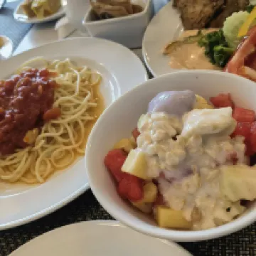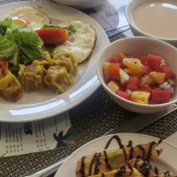 Le petit dejeuné est varié , les piscine sont belle , le personnel n’est pas trés souriant , le prix ne vaut les prestation