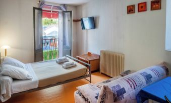 Hôtel agreable chambre aussi personnel accueillant petit déjeuner simple mais copieux pas de parking on peut se garer dans la rue un peu bruyant si on laisse fenêtre ouverte petite restauration mais autour pizzeria restaurant