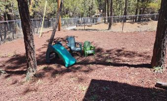 Step outside and relax on the covered front and back decks, both outfitted with plenty of seating and a gas grill — perfect for soaking in the peaceful views of towering Ponderosa Pines.The backyard is fully fenced, making it safe and secure for your four-legged friends to enjoy the great outdoors with you. Unwind with a game of horseshoes or beanbag toss in the cool mountain air, or just kick back and enjoy the tranquility of nature.