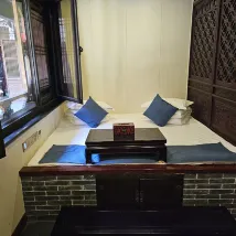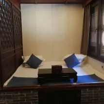 L'auberge est un endroit calme au milieu de l'agitation. Les fleurs, les arbres et les bonsaïs de la cour sont pleins de vitalité, ce qui complète la vieille maison. Ça fait du bien de dormir sur le lit de terre pour la première fois. Le service est prévenant, la voiture à batterie est récupérée et déposée, et un petit cadeau est offert à la sortie de l'hôtel. Ça vaut le coup de vivre