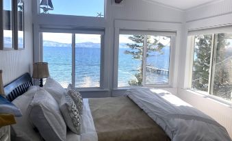 Great location on West Lake Boulevard with unobstructed views of Lake Tahoe. Bike/Pedestrian path accessed across street. Close to Tahoe City and evertyhing else on the West Side, including pristine and spectacular Emerald Bay and endless miles of hiking. House is well equipped, and has a private pier, paddleboards, bikes for guest use. Easy must do’s include cold plunging off the end of the private pier, scrambling up Eagle Rock a short walk away, and chilling on the large deck with full-on Lake Tahoe views. We even had a friendly black bear come bu to say hello!