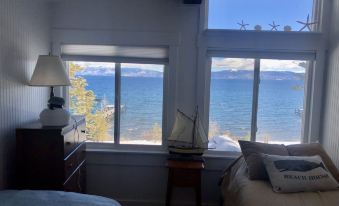 Yes, you did! If you’re looking for the perfect little spot on the Lake for your next family vacation, you’ve just found it! This charming Lakefront chalet is fully stocked and can easily accommodate three families. It sleeps 12 people comfortably on two floors. It has an open living area with a cozy fireplace, an updated kitchen with an island, and everything you'll need for your stay: refrigerator, gas range and oven, coffee maker, espresso machine, coffee grinder, toaster, microwave, waffle maker, pots, pans, cooking utensils, dishes, and silverware. You'll have your own private beach with pier access to enjoy during the summer months. It’s an ideal ski/snowboard chalet during the winter, located just north of Homewood Ski Resort – the best kept secret among local skiers.