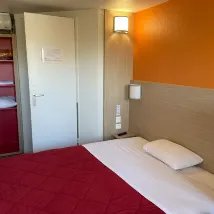 You get how much you pay for. The location is very bad, far away from everything, I would say it’s very private because you barely see anyone. I got so much trouble with the room key luckily my boyfriend knows French otherwise I can’t communicate with the staff at all. The bathroom is very small but quite clean. The bed is comfortable, no apparent stains on it, no odd smell. Nothing bad but nothing outstanding.