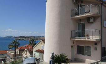 We were staying in Split but left the accommodation (despite paid for the whole time of our holiday) as it was too hot basement accommodation with not enough fresh air and I got ill from air condition which was directly over the bed. Luckily my husband found this hotel. We had room No 4 with balcony and view to the sea. In the room was small fridge and air condition, large wardrobe for storage and kettle for making tea with mugs and glasses. It was very clean, the bed was comfortable - exactly what I needed to get a little bit better. We enjoyed sitting on the balcony and just relaxing. We made our own breakfast and went for the dinner to the nearby hotel Eden. The owner and her mum were very nice. The sea was only about 5 minutes walking down the hill and there were many shops to buy what you need incl. pharmacy. Unfortunately we stayed there only 4 days till end of our holiday in Croatia but if we would go again to this area we definitely would chose Pink Inn.