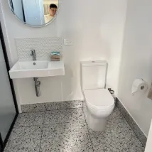 Extremely spacious room. Like the shower most. Water pressure is strong and bathroom is huge & bright. Very convenient location. Grocery, restaurants, all right across the hotel. Love this place and will definitely come back again