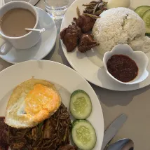 Le petit-déjeuner comprenait du nasi lemak, du pain grillé, des céréales pour les enfants et un dessert également. J'ai une piscine sur le toit et mon enfant en profite vraiment! La chambre est propre. Recommandé et reviendra.