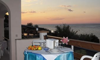 Location is oceanfront and convenient. Restaurant options are just a short walk from the property and easy walk into the heart of Portoferraio. If you are coming by ferry from the mainland it is just a quick drive to the property. Our room was a small suite with a separate sitting area. We had a balcony in each room overlooking the ocean. Each balcony had a clothesline which was perfect since we needed to wash out some of our travel clothes. There is parking available at the property. Breakfast buffet offered pastries and cereals but you could order eggs and bacon if you wanted that. They did offer a dinner menu but we never ate there so I cannot comment on the quality. They have a lovely outdoor garden seating area. They had a bar in the lobby area. Room decor needs a facelift but they are clean and large.