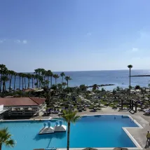 Very clean hotel.gardens are very well kept. The location is excellent. It is also very child friendly which is great for families. There is an excellent Cypriot cafe with great sea views. The Italian restaurant has some great food. We have been many times for long weekends and plan to return soon.