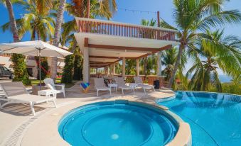Casa Rush is a fantastic, small, hotel. It is very clean with an amazing pool that overlooks the bay of Puerto Angel. The pool is large and warm and is great for kids that can swim. The temperature of the pool warms up during the day but if you are wary of a cold pool you don't have to worry here! We saw whales passing by in the bay right from the pool!