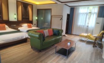 房間乾淨整潔設施齊全,裝修簡約大氣而又別具一格!小院兒臨山而建、曲徑通幽,院子前面有個池塘,寬闊的攔水堤壩通向遠處的茶園和竹林,還有散養的走地雞,到了夏天肯定是個泛舟垂釣、燒烤露營的好去處。