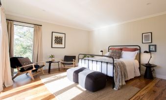 The suite is spacious and has a luxurious feel. The bed was comfortable and comes with extra pillows. From suite 2 we had a view of a well cared for open garden room, where we enjoyed our included breakfast. The hosts are excellent gardeners as proven by the care they take of the grounds and the many flowering and fruit trees. There are lots of spaces to enjoy on this property including the pool - a bit too cold the weekend we were there but a reason to return Dave was a fantastic host and had the fire pit lit for us in the evening with extra firewood ready to go - a fantastic way to enjoy a cheese board and that special wine we found during our day. Thank you for a great stay for a birthday weekend.