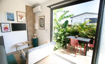 This air-conditioned bungalow of 20m2 is perfectly equipped to guarantee a pleasant and peaceful stay. It includes a kitchen with a microwave, a washing machine, a bathroom, and a private terrace near the pool, offering everything needed to fully enjoy the south of the island.