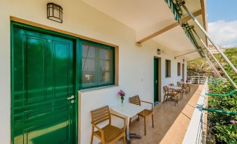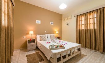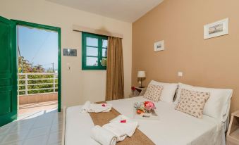 Chambre agréable et très propre (avec clim, frigo et bouilloire), cuisine commune à disposition et agréable salons de jardin dans un beau jardin luxuriant et ombragé. A 2 pas de la plage et des restos. Stegna , loin des gros complexes touristiques est une petite station balnéaire tranquille avec de belles plages, de sympathiques restaurants (incontournable passage à la Taverna Maria !) et de petites supérettes bien pratiques. Excellent camp de base pour visiter le sud et le centre de l'ile, mais il faut être véhiculé car très peu de bus. Mais bon, il faut le dire, ce qui fait le caractère exceptionnel de ce petit hotel c'est le super accueil de George, si sympathique qu'on se croirait en famille ! Disponible et attentionné, il donne de bons conseils pour visiter son ile, toujours soucieux que vous passiez d'agréables vacances...et ici, c'est obligé, comme nous, vous passerez les meilleures vacances ! Merci George !