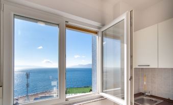 Petite résidence. Dans le quartier de Kantrida, à 6 km du centre de Rijeka, à 7 km du centre d'Opatija, à 200 m de la mer, à 200 m de la plage. Infrastructures de la Maison: accès internet, ascenseur. Place de parking, parking public couvert. Magasin d'alimentation, supermarché 450 m, centre commercial 2 km, restaurant, café 50 m, arrêt de bus 20 m, plage de graviers, plage de rochers 200 m, piscine 1 km, piscine couverte 1 km. Tennis 2 km. Jeux pour enfants 10 m, Possibilités de pêche 200 m.