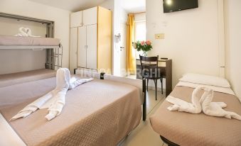 Abbiamo soggiornato una settimana in questo hotel. Onestamente leggendo le recensioni mi aspettavo molto di più. Camere piccolissime, con la doccia fuori dal bagno e onestamente abbastanza sporche. Si legge che c'è il balcone, ma quello non si può definire balcone. Abbastanza limitante. Buffet scarso, una volta terminato era terminato, nessun secondo giro. Cibo nulla di entusiasmante. Ottima la posizione. Ma sicuramente se dovessi tornare a Rivazzurra, non tornerei in questo hotel. Il cameriere, l'unico molto gentile.