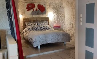 This troglodyte is buried in the rock, hidden in the garden. This suite shows signs of its historic use as a dwelling with a traditional bread oven in the living room. The accommodation is perfect for two, but can take up to four people with a fold-out sofa bed (140cm). It includes a kitchenette with a microwave, 2 hot plates, mini-grill, espresso machine (Tassimo), toaster and kettle, a living area with dining table and seating area, a bedroom with a double bed ( 140cm), a separate bathroom and a private terrace.