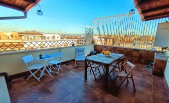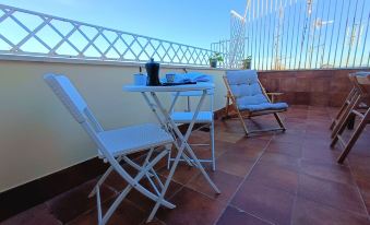 It has a dedicated terrace from where you can enjoy a magnificent view of the Eternal City while having breakfast or an evening aperitif on the comfortable coffee table.