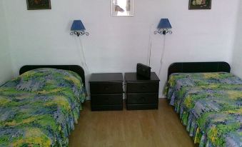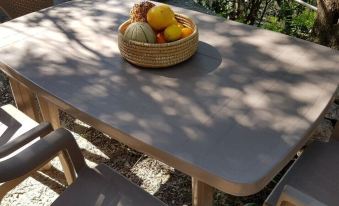 Rustic construction with three rooms and small well-equipped kitchen, stove, microwave, large fridge, toilet with sink, shower and bath plus another separate shower room. The three rooms consist of two bedrooms. In each bedroom there are two beds with a large wardrobe, bedside tables, etc. The third bedroom serves as living and dining room, a sofa bed can accommodate one or two adults / children. Interior surface about 45 square meters plus a large balcony of 12 square meters in front of the house sheltered from the eaves, and a terrace on the west side, next to the kitchen, with awning, large table (6 people), chairs for eating out and barbecue. Hot and cold water in the kitchen and in the toilet / bath / shower (cumulus), in the second shower and in the separate bedroom.