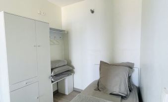The apartment can comfortably accommodate 2 adults or a family of 2 adults and 1 child. There is a convertible sofa (Sedac-Meral) and a single bed. Among the equipment: smart TV, washing machine, oven, fridge, microwave, ceramic hob, hood, coffee maker, kettle, etc.
