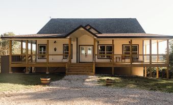 Peaceful seclusion located at the end of a 1,200 foot long driveway in the middle of 16 acres of land. The home sits in the heart of the Mark Twain National Forest with an amazing view of the Ozark Mountains and Table Rock Lake. Enjoy the large wrap around porch, gourmet kitchen, large soaker tub and relaxing lounge areas. Make memories with your family playing games, listening to music and enjoying the stars at night. Come experience Huckleberry Hollow and all it has to offer!About pets:Pets allowed: dogs (limit 2 total).Dogs must be kenneled when left alone. 1 provided.About checkOut:Check out before 11:00 AM.About children:Children allowed: ages 0-17.About checkIn:Check in after 3:00 PM.About smoking:Smoking is not permitted.About minBookingAge:Minimum age to rent: 22.About events:No events allowed.