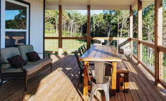 We thoroughly enjoyed the house and property and appreciated the thought and effort put into building and setting the house up for visitors. The porches are very inviting and useful for eating out or just visiting. We hope to return soon.