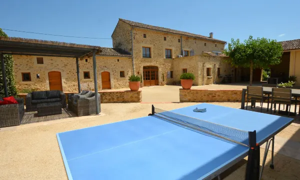 Le Mas des Trois Anges: Beau domaine "Le Mas des Trois Anges", jumelé, du 16ème siècle, renové en 2023. 4 appartements dans la même entité. Dans la localité, à 200 m du centre de St Denis, situation ensoleillée, excellente situation: centrale mais tranquille, dans la verdure. En commun: jardin entretenu, 2'000 m2 (pas clôturé) avec pelouse, piscine rectangulaire chauffée (12 x 6 m, profondeur 160 cm, disponibilité saisonnière: 01.Avr. - 30.Oct.) avec alarme de sécurité. Ping-pong, terrain de pétanque, terrasse, meubles de jardin, espace barbecue. Infrastructures de la Maison: Connexion WIFI. Place de parking. Supermarché 4.6 km, restaurant 1 km, arrêt de bus "Place" 7 km. Attractions à proximité: Uzes 37 km, Pont du Gard 50 km, La Grotte Chauvet 27 km, Ales 24 km. Les lacs connus sont facilement accessibles: Rivière Ceze 400 m, Les Gorges de l'Ardèche 26 km. Région de randonnées: Les Cevennes, Fôret. Veuillez noter: D’autres appartements sont également proposés à la location dans cette maison de vacances. La propriété référencée FR6876.100.1-4 est située sur le même terrain. Toutes les maisons/appartements sont aménagés individuellement.