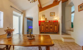St Jean du Gard: Maison mitoyenne rustique "La Volte", rénovée en 2020. À 7 km du centre de St. Jean du Gard, situation ensoleillée sur un versant, à 10 m de la forêt, dans la verdure, dans la forêt. A usage privé: terrain à l'état naturel 157 m2, jardin (pas clôturé) avec plantes et arbres. Accès en voiture jusqu'à le terrain par un chemin étroite. Sentier en escalier (16 marches) jusqu'à la maison. Place de parking sur le terrain. Magasin d'alimentation 7 km, supermarché 7 km, arrêt de bus "La Bernardelle" 700 m. Attractions à proximité: Alès 35 km, Nimes 70 km, Montpellier 75 km, Anduze 15 km. Région de randonnées: Nombreux chemins de Randonnées GR, Parc national des Cévennes. Veuillez noter: voiture recommandée.