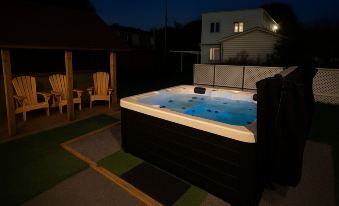 Relax and unwind in the outdoor hot tub, available year-round 🛀.