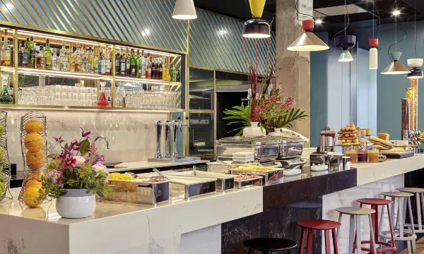 Cet hôtel accueille un snack bar/épicerie fine où vous pourrez acheter quelques en-cas et propose un service d'étage (horaires limités) idéal pour les soirées cocooning. Pour bien finir la journée, vous trouverez sur place un bar / salon. Un petit déjeuner buffet est servi en semaine de 06 h 30 à 09 h 30 et le week-end de 06 h 30 à 10 h 30 (en supplément).