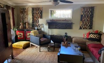 This is home is a retreat so quiet peaceful, but easy to jump onto 5 freewaysNot your usual place Unique decor floor plane. Perfect privacy. Neighbor hood has wonderful coffee shop good restaurants. Whole Foods one block.About pets:Pets allowed: dogs less than 20 lbs per pet (limit 2 pets total).Love cats but afraid of spraying and clause..About children:Adults only.About smoking:Smoking is not permitted.About events:No events allowed.