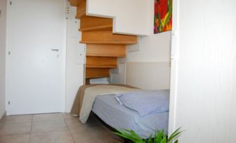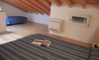 Dans les combles, il comprend une chambre avec un lit double et un lit simple, une salle de bain avec cabine de douche (sans fenêtre).