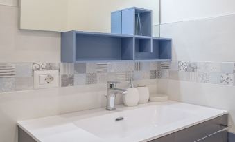 Apartment on the mezzanine floor with private entrance, in an elegant and totally renovated context, inside a fenced court. It overlooks the beach and the main square of the village. It consists of 3 double bedrooms, one with a bunk bed, kitchen with double sofa bed, 3 private bathrooms with shower, table and chairs outside, living room with outdoor TV. It is tastefully furnished according to the latest trends in furniture. The kitchen recalls the marine style with the Azulejos tile covering. It is equipped with all the most modern appliances (induction hob, microwave, dishwasher, washing machine, etc ....). The portico with sea view is ideal for al fresco dining, and the living room lends itself to enjoy the warm summer evenings. Ideal for families with children, or for anyone who wants to enjoy the perfect position on the beach, and to participate in the evenings organized by the San Mauro Mare Village, in the square or on the seafront.