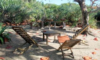 The chalet is completely independent and equipped. It can host up to 3 adults or 2 adults and 2 children. It consists of a double room with air conditioning and mosquito net, a small room where more people can sleep, a small kitchen equipped with a table to eat, a bathroom and a small balcony with deck.