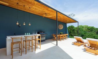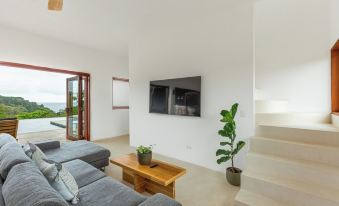 Villa Serena at Hermosa Hills: Enjoy the great ocean view while swimming in our 45 sqm salt water pool. Picture yourself enjoying sunset while preparing a barbecue with friends. Villa Serena is a tranquil, super elegant 3 bedroom villa for 6 guests. It is located just a 7 minute drive to the beach and restaurants of Playa Hermosa. 15 Minutes to the beaches of Santa Teresa. Villa Serena is perfect for groups of friends and families looking for a special vacation home with breathtaking ocean view!About pets:Pets allowed: dogs and cats (limit 2 total).About checkOut:Check out before 11:00 AM.About children:Children allowed: ages 0-17.About checkIn:Check in after 3:00 PM.About smoking:Smoking allowed: in designated areas.About minBookingAge:Minimum age to rent: 18.About events:No events allowed.