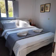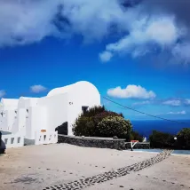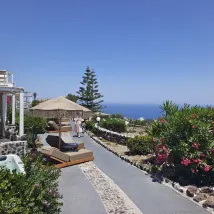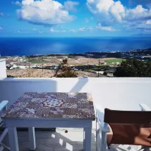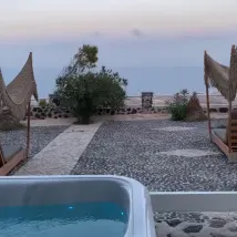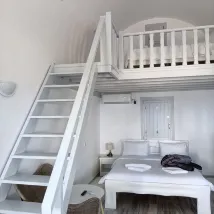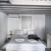 Nous y avons passé trois nuits et, globalement, le séjour était très agréable. Les maisons, d'un blanc éclatant et de style duplex, offraient une vue magnifique sur le lever de soleil sur la mer dès qu'on ouvrait la fenêtre. C'était absolument splendide. Le propriétaire était également très chaleureux et accueillant. Il proposait un service de navette (moyennant un supplément) de l'aéroport à l'hôtel et de l'hôtel au port. Le service était excellent !