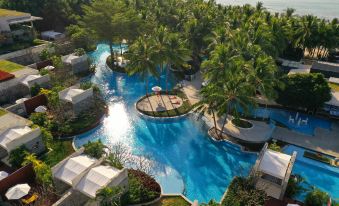 Located near the Lu huitou Mountain, you can embrace the mountains and sea in your heart, capturing the setting sun by your side. Find a tranquil place, where the beautiful sea view unfolds before your eyes. Between the mountains and the sea, there is a perfect balance of movement and serenity. Experience the comfort of being close to the bustling city yet enjoying the tranquility of a secluded corner. The hotel offers 342 rooms/suites/villas, and the villa area provides a serene and leisurely atmosphere. Enjoy the gentle blue tides of the sea view rooms, feel the sea breeze up close at the Mediterranean Restaurant, listen to the sound of the waves at the Ocean Front Pavilion Restaurant, savor German-style craft beer at the Beer Factory Restaurant, relax your body and mind at the InterContinental Spa, and enjoy a carefree time with your family, immersing yourselves in the joy of vacation. In the sunshine and coconut groves, experience the pleasure of exercising with Italian fitness equipment from Technogym in the fitness center surrounded by tropical rainforests. Awaken to a light-hearted vacation and embark on a delightful journey.